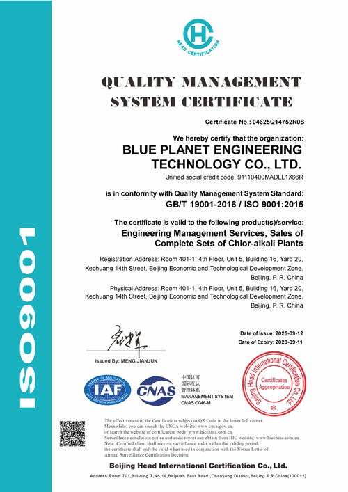 We are BPC (BLUE PLANET ENGINEERING TECHNOLOGY CO., LTD), a global engineering company that integrates engineering, technology, service and international trade. We focus on providing integrated solutions for chlor-alkali plants, upstream & down-stream supporting technologies, as well as EPC general contracting. We are the leader of China for overseas marketing and sales business, as well as a platform to provide technology and service for global chlor-alkali clients.